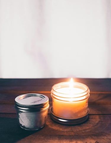 Melt beeswax and coconut oil using a double boiler (jar-in-pot method). Add essential oil (optional) and place wick at center. Let cool fully before lighting.